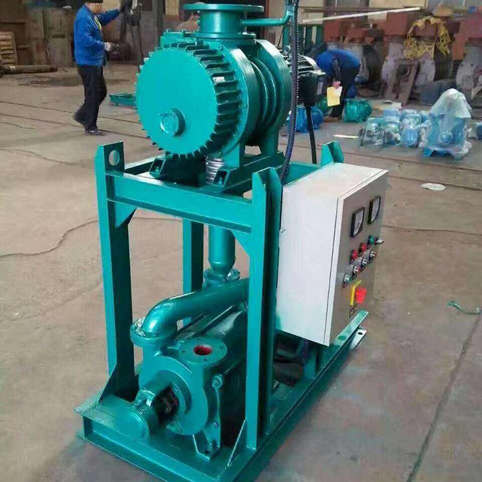 真空泵机组,是以罗茨真空泵为主泵,螺杆真空泵为前级泵的抽气系统,此机组过流部分没有任何液体作工作液,压力不受水温影响,对被抽工艺气体不产生二次污染,便于排出气体的回收。